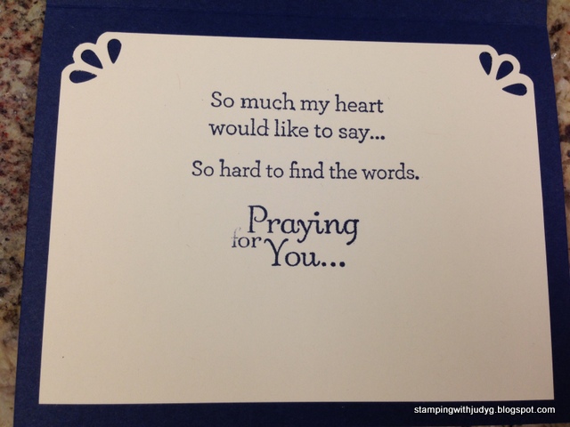 This is the inside. I combined the sentiments from An Open Heart with the Thoughts and Prayers sentiment. I think using the Curvy Corner Trio punch on the top two corners added to the inside of this card.
