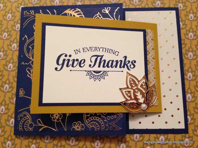 Thanks for joining this month’s blog hop! This month is a FUN FOLD month! Since Thanksgiving is on the horizon, I thought I would share a fun fold card made for a friend.