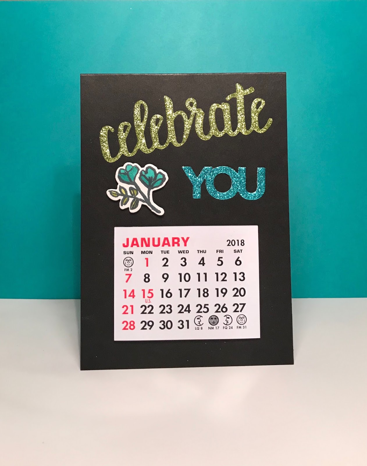 Happy 2018! Welcome to the first Stampers Dozen Blog Hop of the year!! And, being the first of the year, I think we are all in need of a new calendar. Using the FREE Sale-A-Bration (SAB) Celebrate You thinlits and the fabulous Myths & Magic glimmer paper, I created this quick and easy calendar.