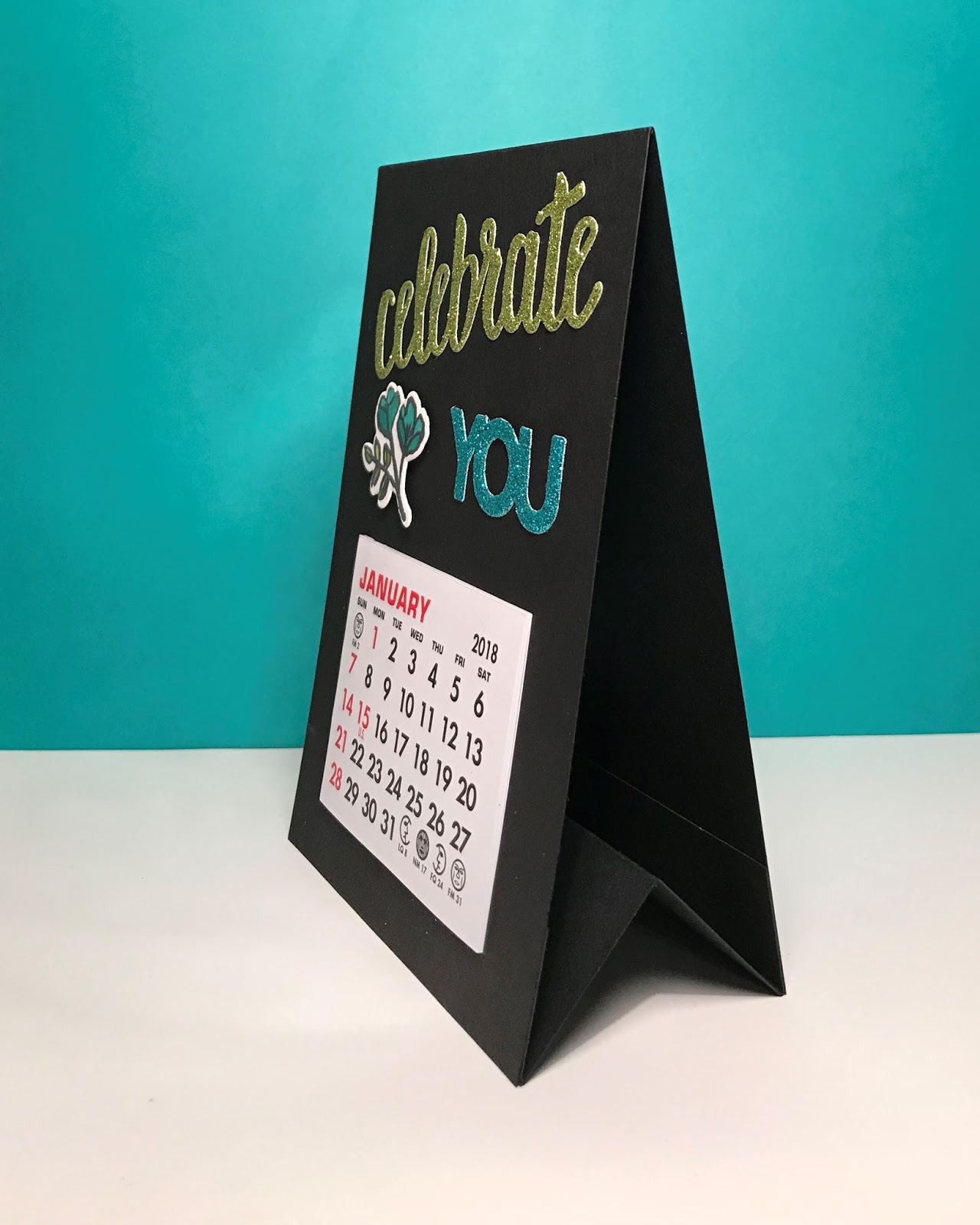 Here is a side angle picture of the calendar so you can see how to adhere the smaller piece to make the calendar stand nicely.
