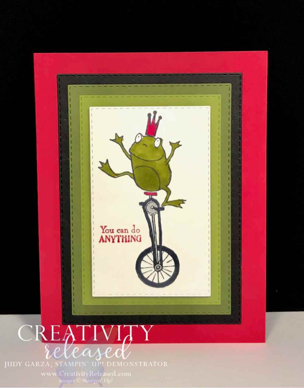 Along with showing off the frog in So Happy Together, I also want to highlight the new, amazing Rectangle Stitched Framelit dies. There are 13 dies in this set that layer perfectly together.