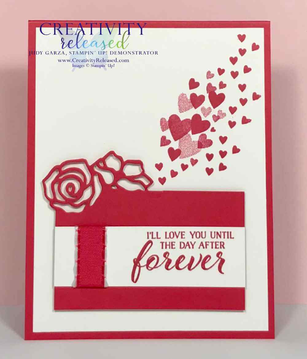You do not want to wait until the last minute to make your love a valentine card. Now is the time to get ideas and order your supplies to have in time to craft your card. Thus, I am sharing a Valentine card idea today. This card is super easy if you have the Forever Lovely Bundle, found on page 5 of the Occasions catalog. At first, when I looked at the dies in this set, one puzzled me. It is the rose corner die. Therefore, I want to show you what it can do and how to use it!