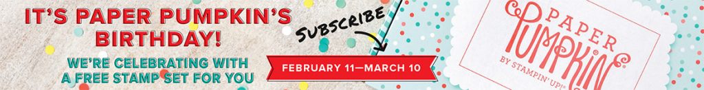 Paper Pumpkin is turning six years old and we’re celebrating! March’s kit features an additional FREE stamp set (2 instead of 1 stamp set!), eight birthday cards that are sure to “pop,” plus cool